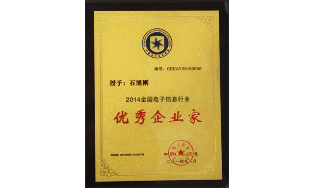 中威電子董事長石旭剛先生榮獲“優秀企業家”稱號