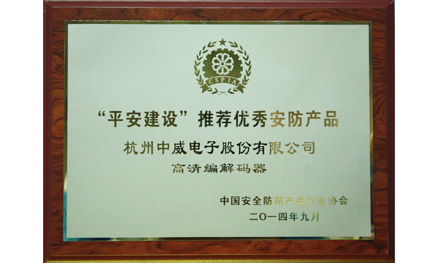 中威電子榮獲2014“平安建設”推薦優秀安防產品獎